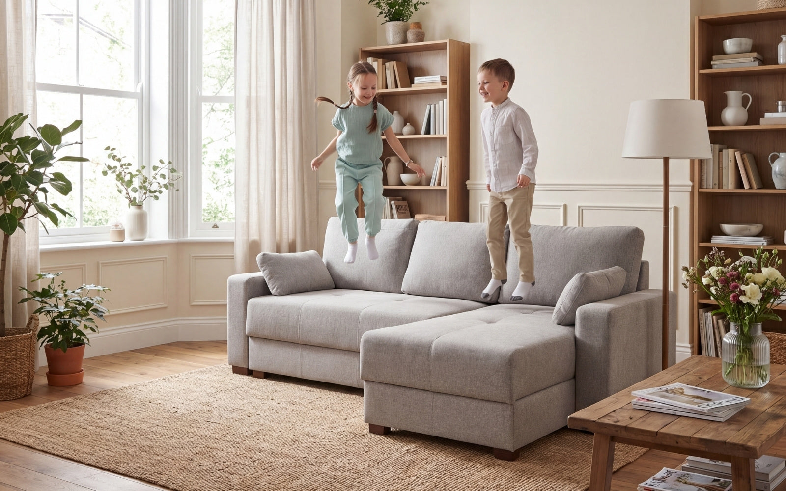 Most British living rooms are not large. The chaise stores bedding beneath the seat so you do not need a separate airing cupboard. Position the chaise left or right to suit your layout. Easy-clean fabrics handle children and pets without looking worn within a year.