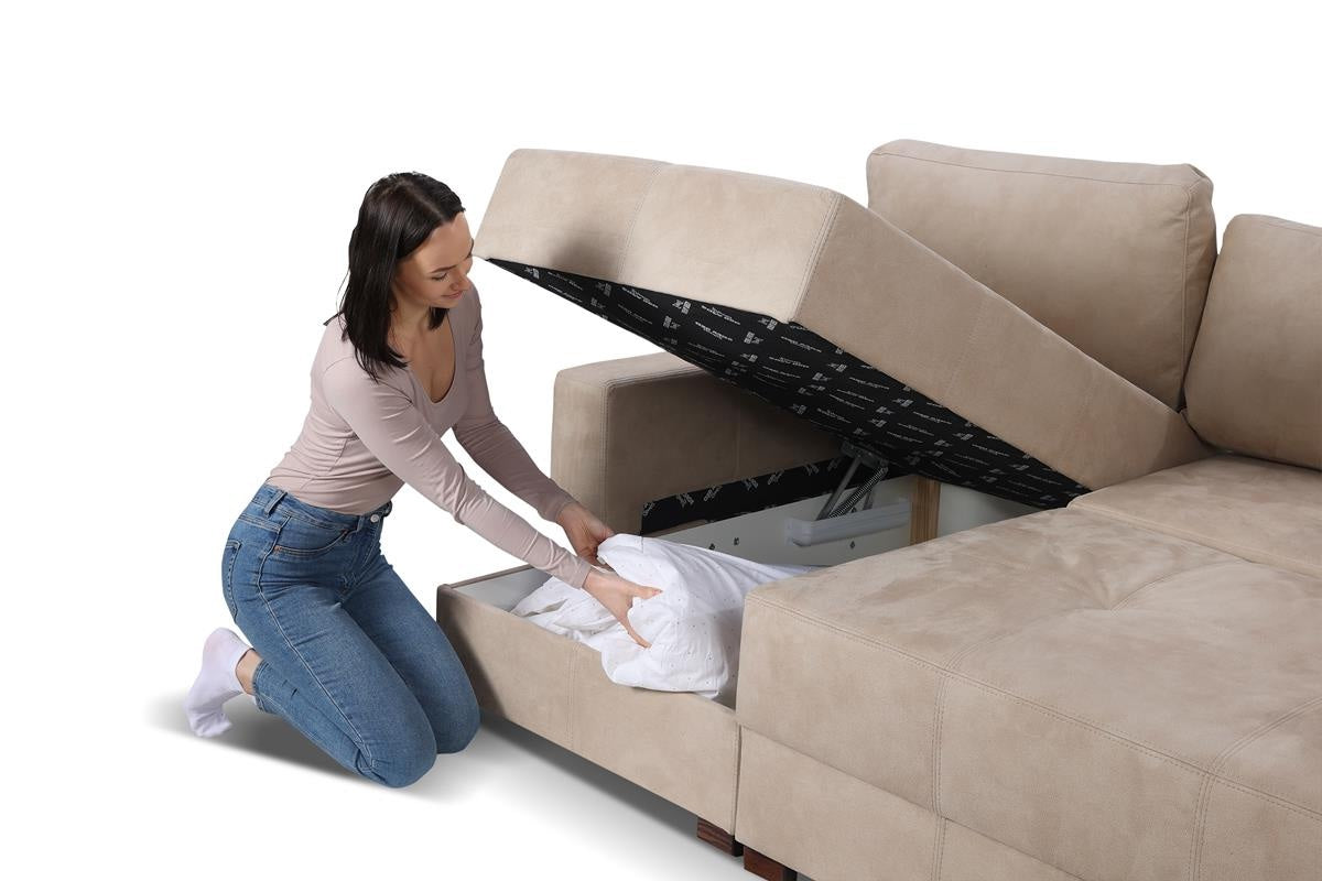 Our sofa beds are designed with your everyday needs in mind. With plenty of storage space, they help keep your living area organized and clutter-free. The easy-clean, pet-friendly fabrics ensure they stay looking great, no matter the mess. For added versatility, interchangeable sides allow you to adapt the layout to suit your space perfectly. Practicality meets style in every detail.